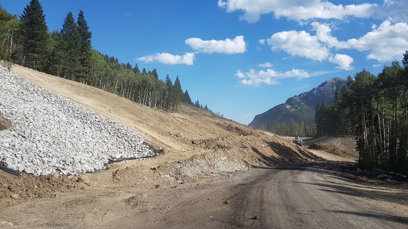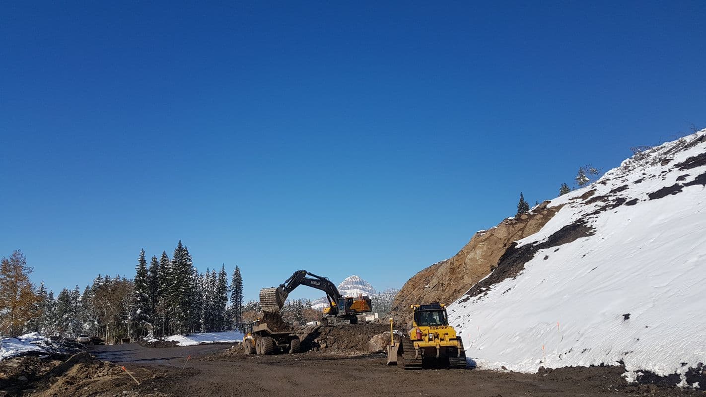 Morgan was contracted to construct 2 kilometers of access road from Highway 3 to the new clubhouse, maintenance building, and driving range for the Crowsnest Pass Golf Club in Blairmore, AB. The project included excavation, blasting, gravel installation, paving, drainage features, and installation of utilities. Highway 3 was widened and new traffic control features were installed to manage the increase in traffic to the facility. The project included several challenges, including careful monitoring of settlement and installation of geosynthetic layers to manage the risks of constructing road immediately above an existing mine shaft from an abandoned coal mine and adjacent to a sensitive wetland.