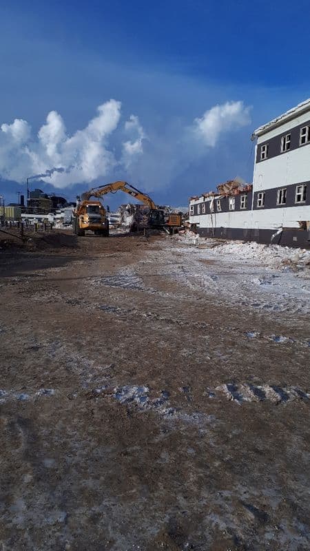 Morgan provided hazardous materials abatement of the former camp site including an extensive asbestos abatement of the camp kitchen area. Through this technically challenging project Morgan built trust with the owner leading to the second phase of work which included demolition of the abated kitchen and eating area as well as several wings of the former camp. Special care was taken to size the demolished material and separate waste types to lessen the amount of material entering the landfill. Another challenge was that all materials had to be transported through the active mine site. Morgan with its many years of experience working in active mine sites was able to quickly provide trained and experienced drivers and trucks suitable for the task.